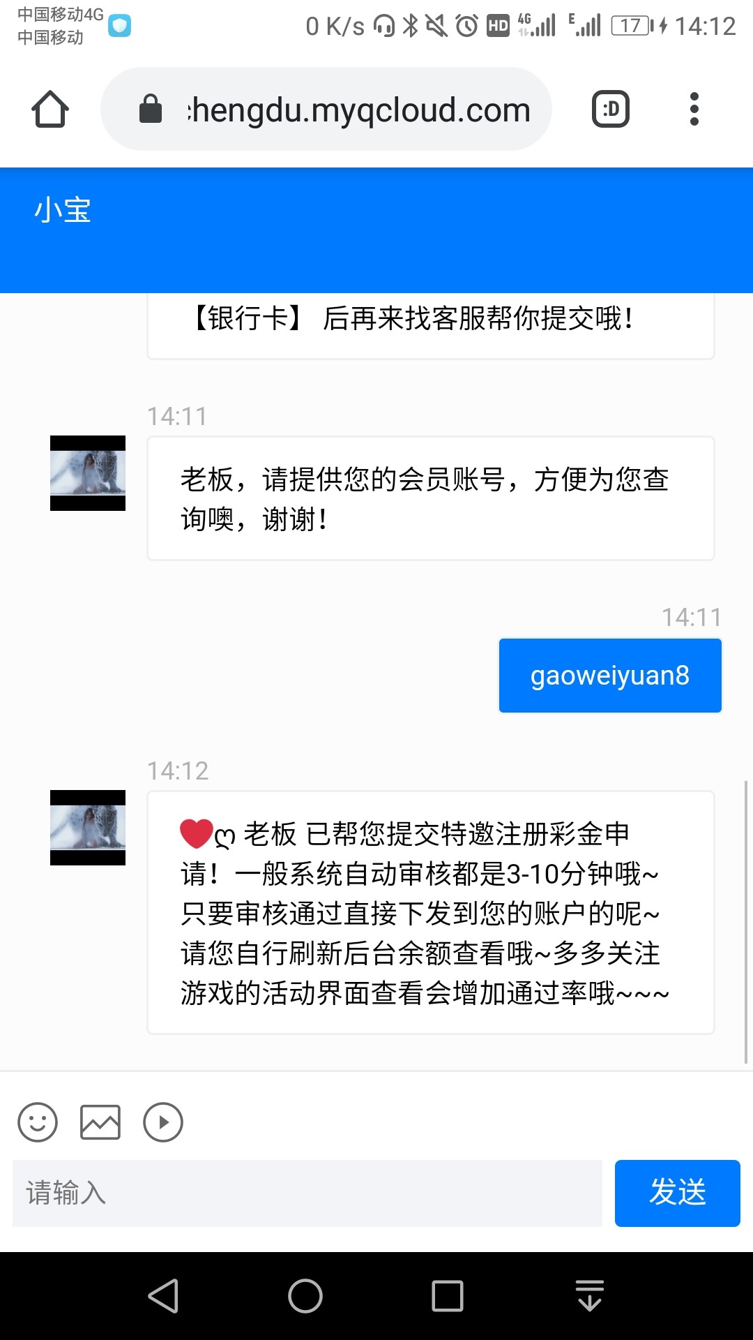 新用户注册绑卡,完善信息,找客服申请特邀彩金,没有收到短信的自助批短信图申请!