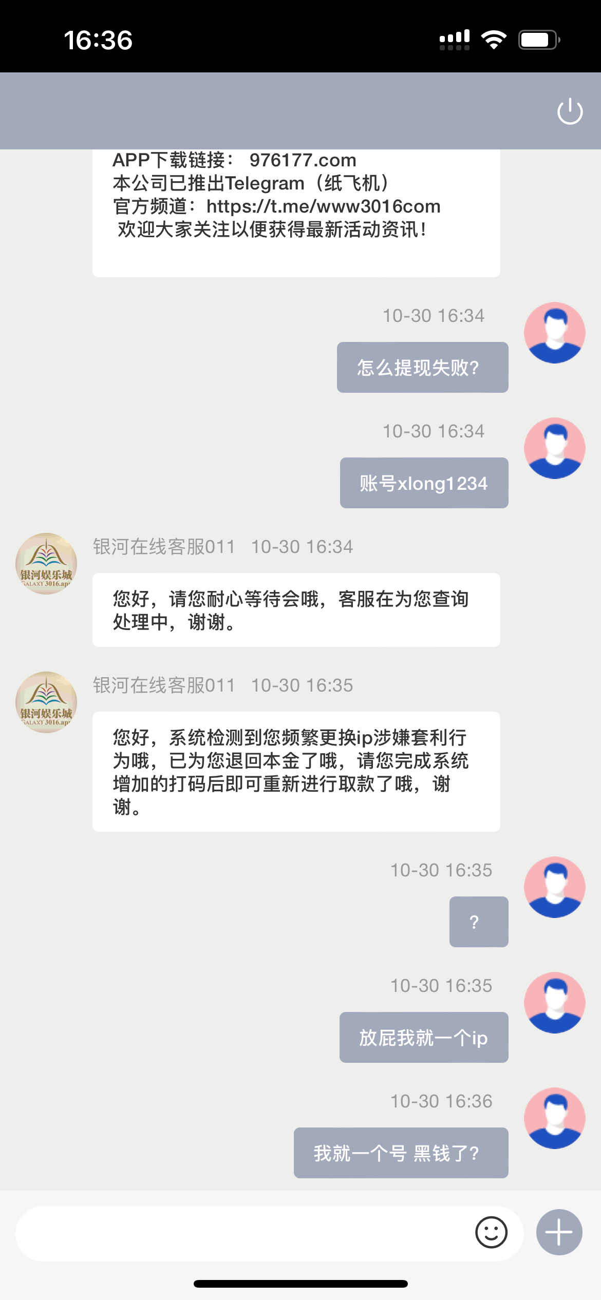 真的第一次在黑黑推荐的平台被黑了,银河国际。没有申请任何优惠 也没有多账号 一直说我多ip