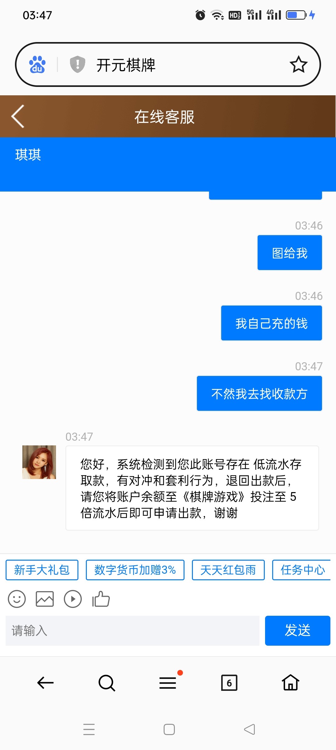 随机黑,用cfb玩的注意这个台子哈,看见别人推给你是这个直接绕过,虽然我出了但是下午看见好多老哥也是同样的情况,有些人被罚五倍,有些人被罚十倍,有些人是直接全部罚没