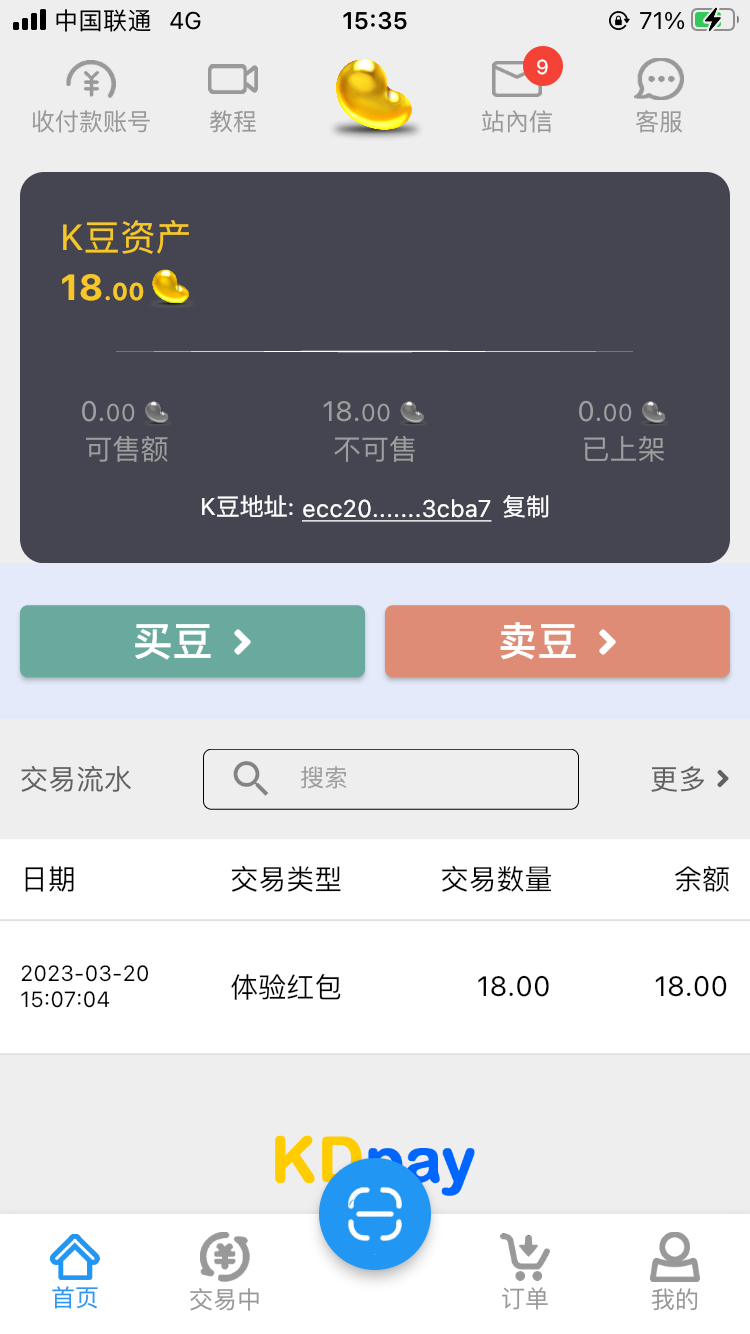 大家不用去了,我今天收到一个特邀可以用k豆钱包充值,但是这个钱包狗,必须要首次买币80个以上才能用这个币