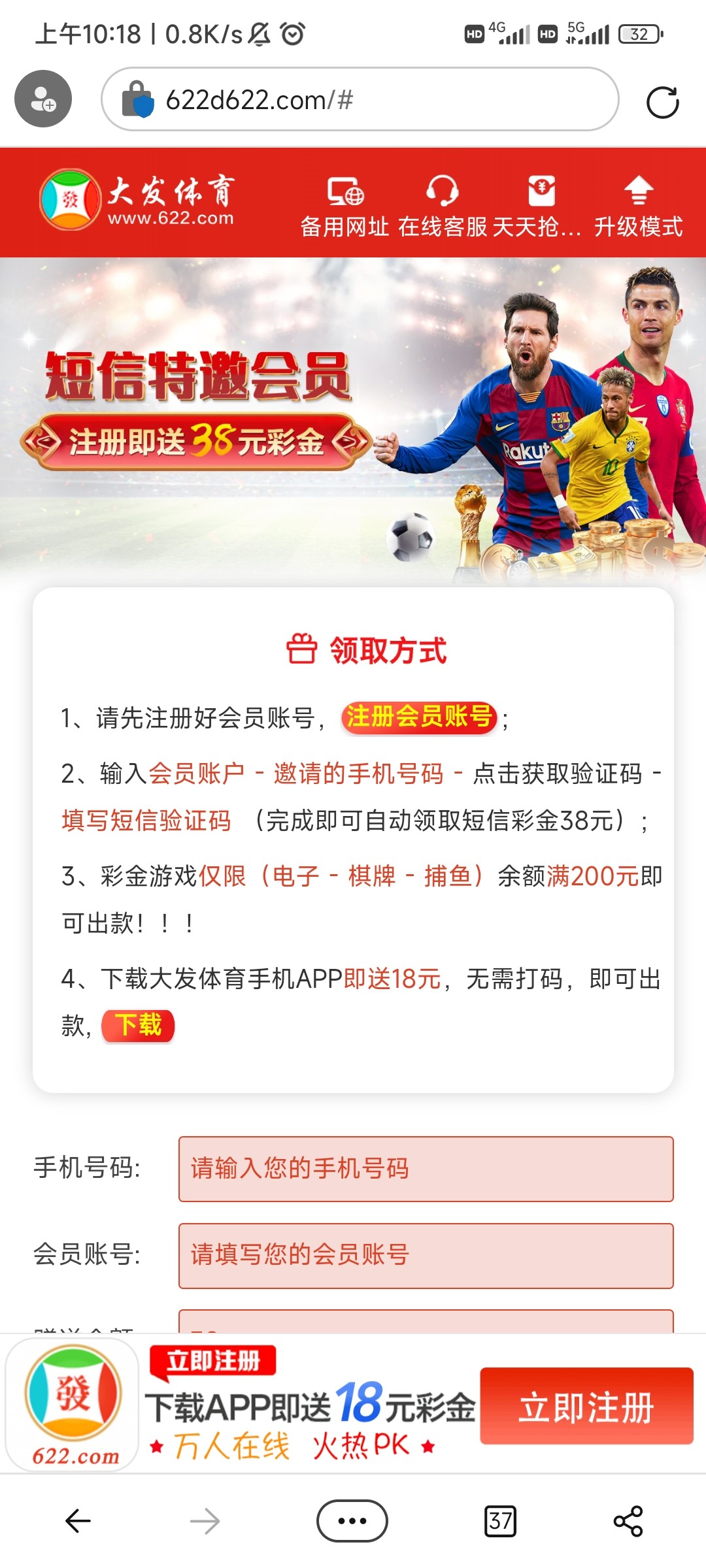 【大发体育】短信申请38