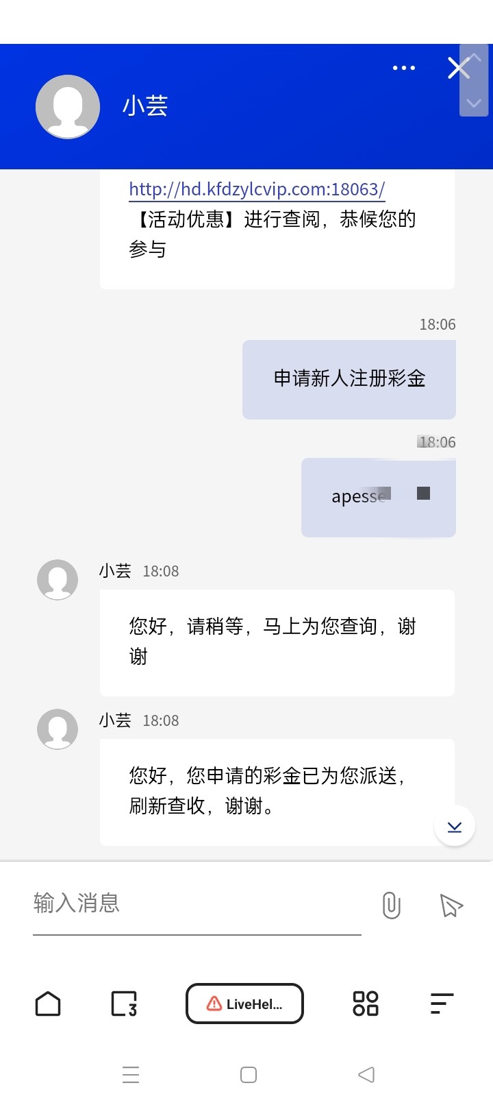 注册之后找在线客服申请彩金满100提现
