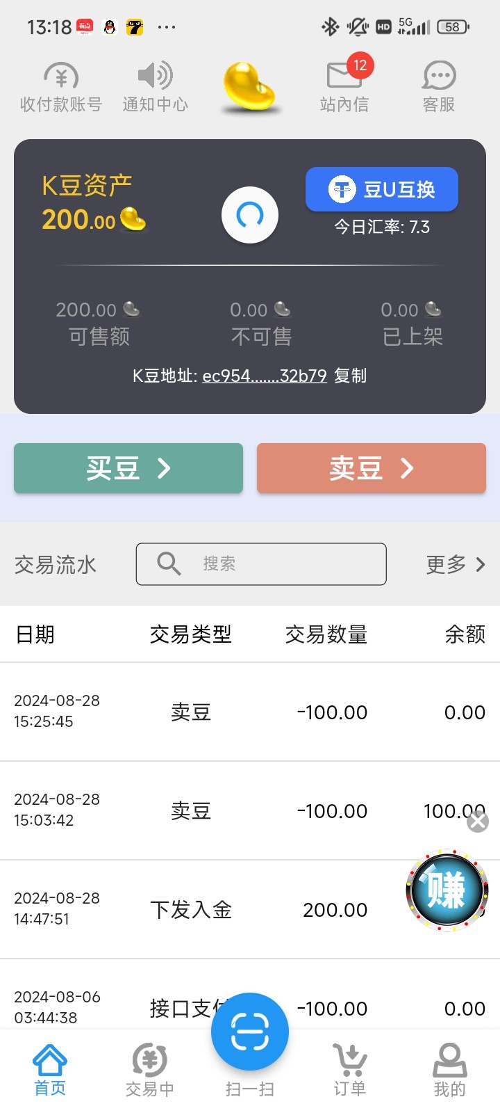 嫖到了,k豆入两百,pp五金兔,号上还剩一百,感谢老哥