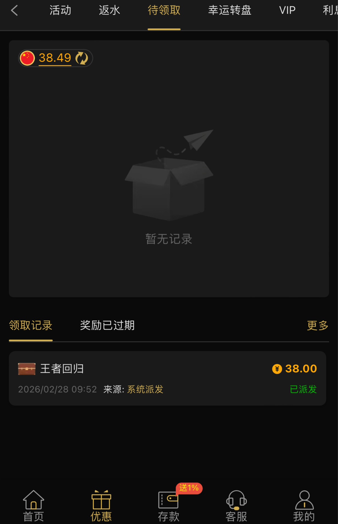 这是电话回访彩金,有账号的哥们可以联系客服碰瓷一下看在不在名单中
