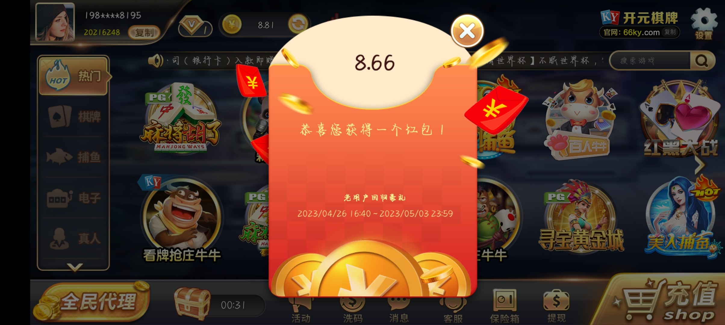 【66开元】—✅—回馈8.66