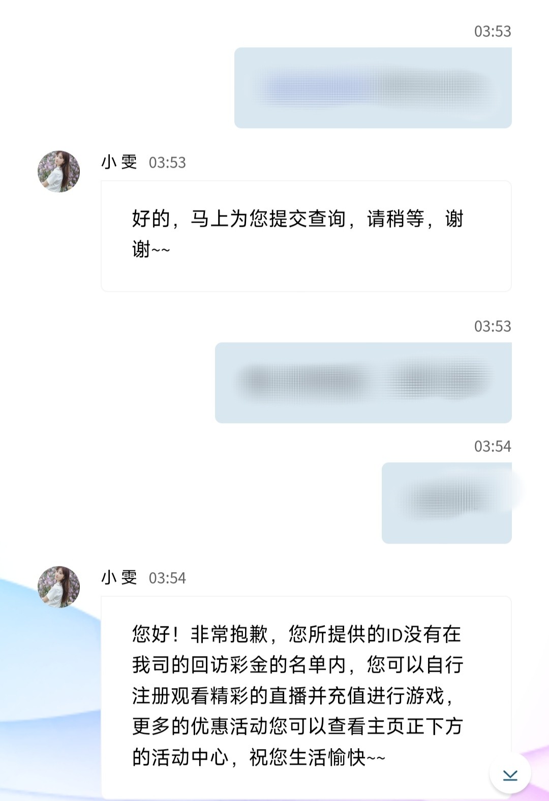 老用户登陆上去找客服申请电话回访彩金 要在他们回访名单才送(不送无视)我没碰到!