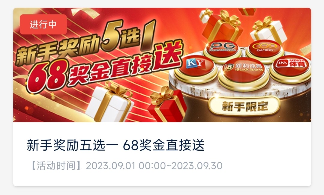新用户注册绑定手机号银行卡 优惠里面自助领取68元彩金可任意选择领取到五个游戏钱包中的一个: