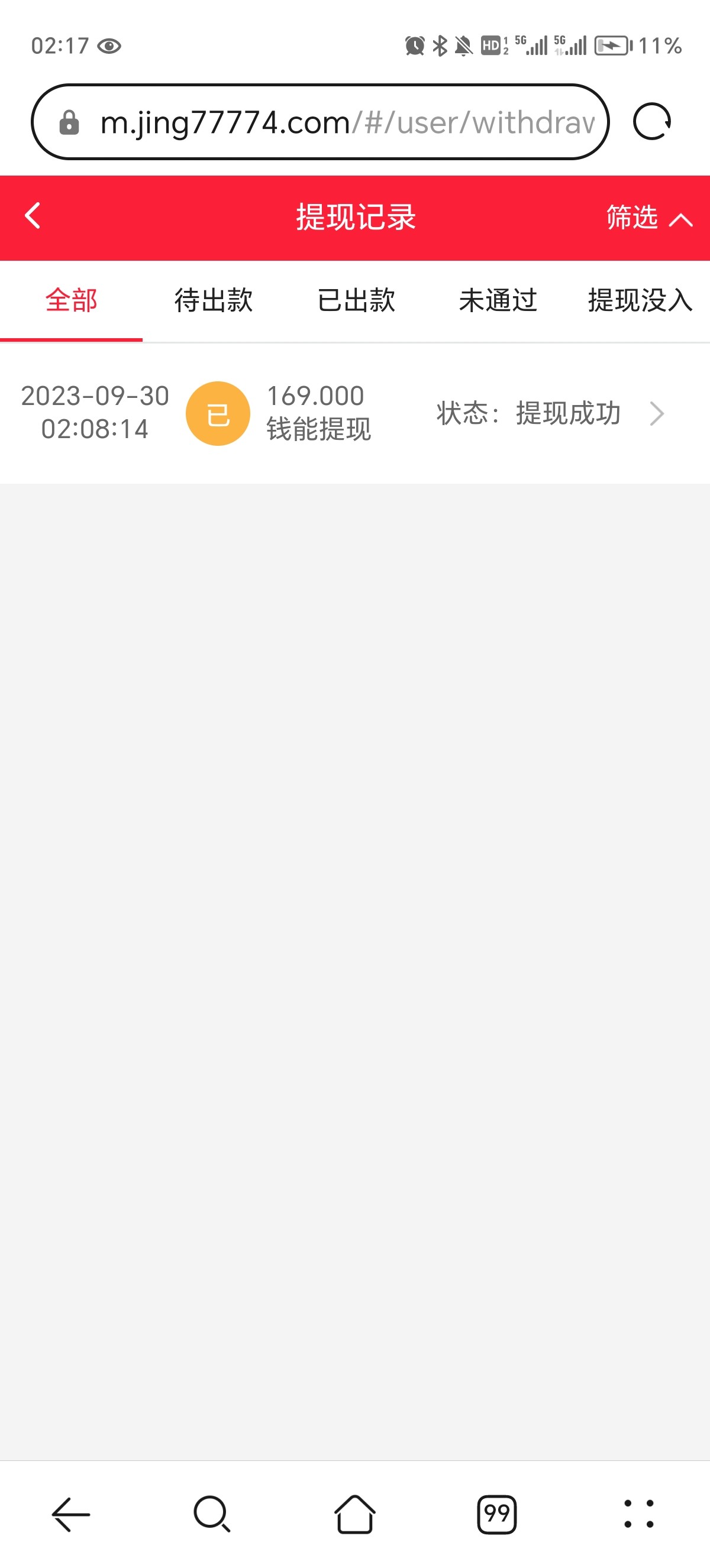 860送15上169 提款已到账