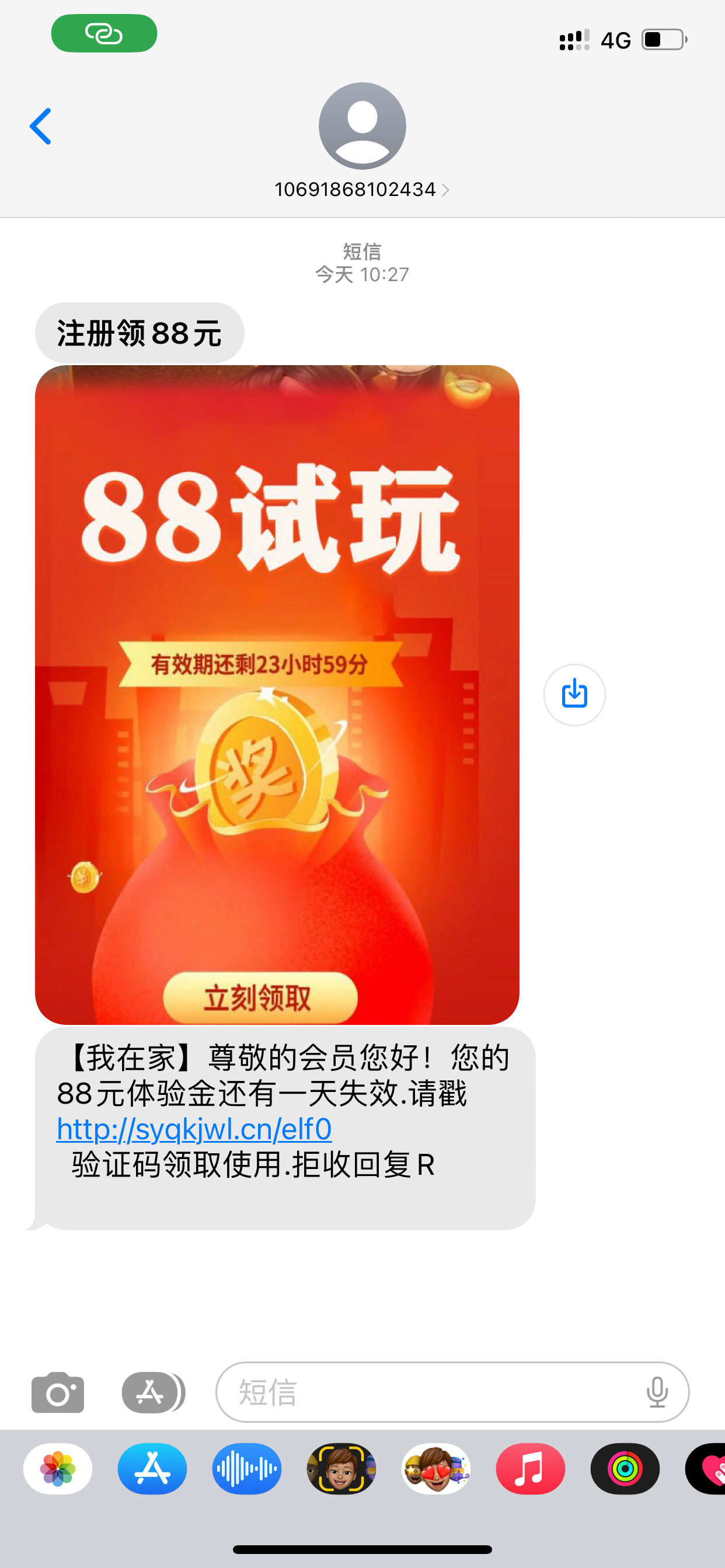 短信碰瓷 注册好 发手机号给客服申请