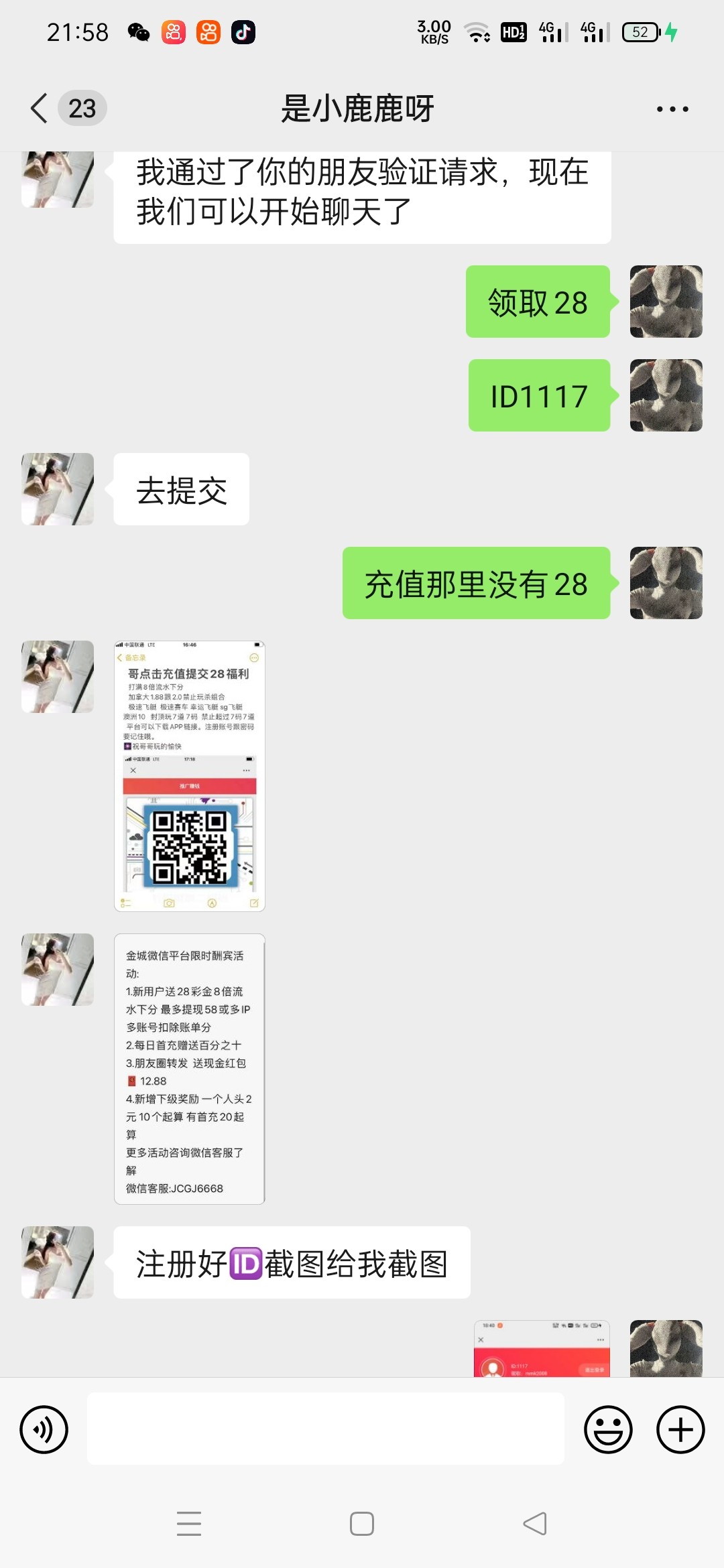 微信扫码注册好截图你们自己的id然后微信加微信客服发送领取28八倍流水提现最低38