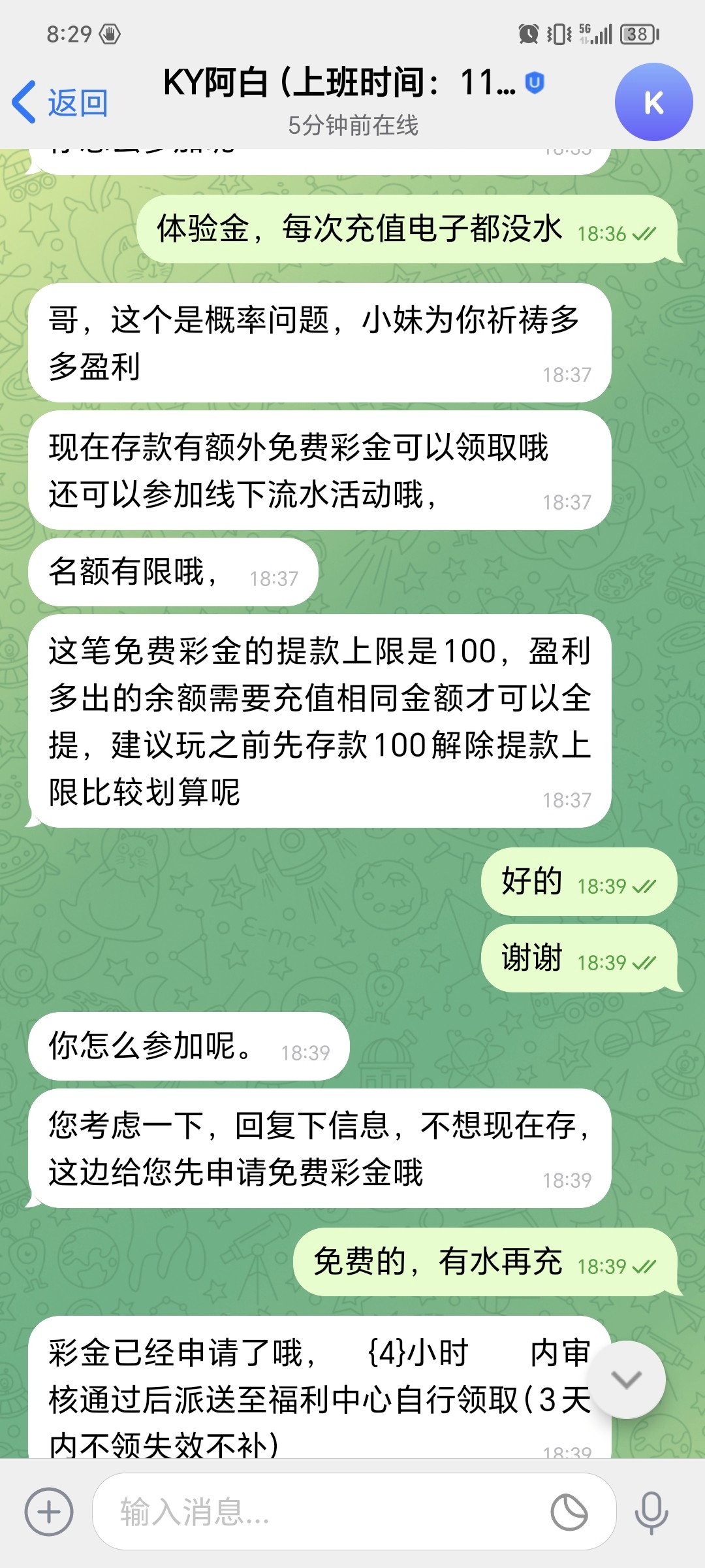 100都不给出,叫我充值本金送的58彩金