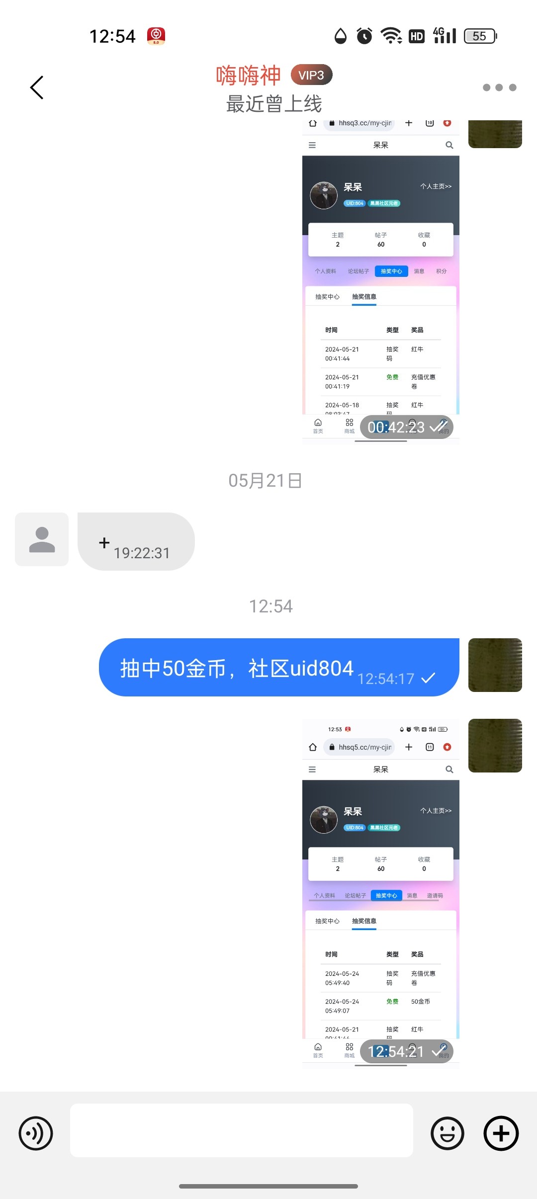此图为抽奖兑换正确展示页面、需要有社区id+社区账户