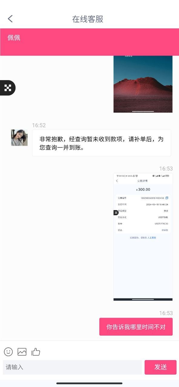 这平台我都VIP2累充不下1万了,用U充值300不到账,找客服给的理由是“掉单”! 用U充值还有掉单的吗,查链都看到地址收到钱了,还让我再冲一笔,两笔一起到账!!!