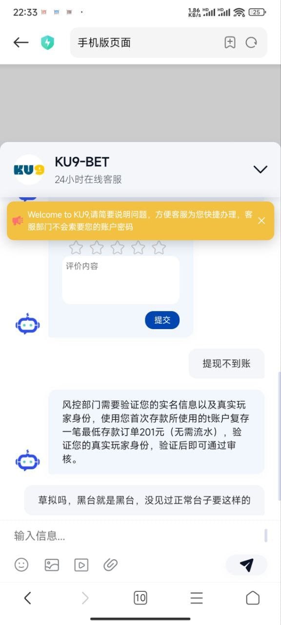 ku9黑平台 两百提现一直不到,问客服就是要存款验证,