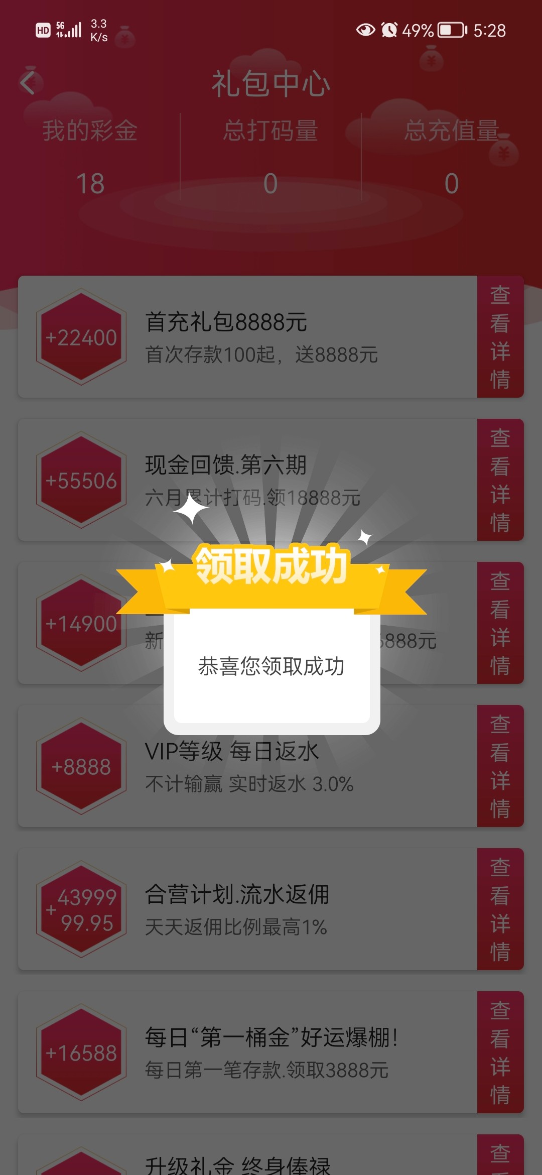 注册绑卡,首页礼包中心自行领取彩金