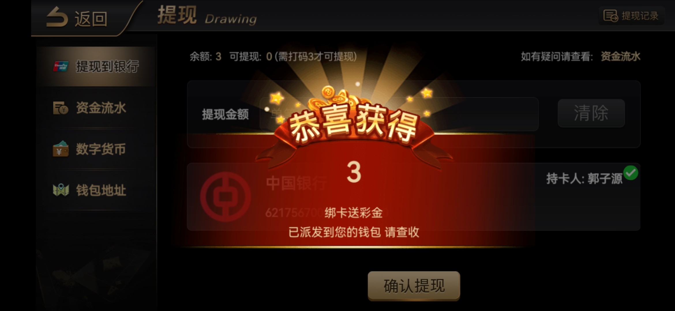 注册绑卡送3