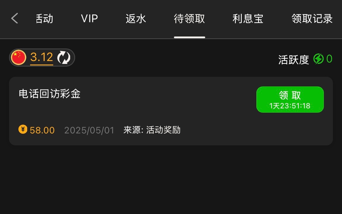 碰瓷回访彩金,有号的兄弟可以上号联系客服碰瓷试试