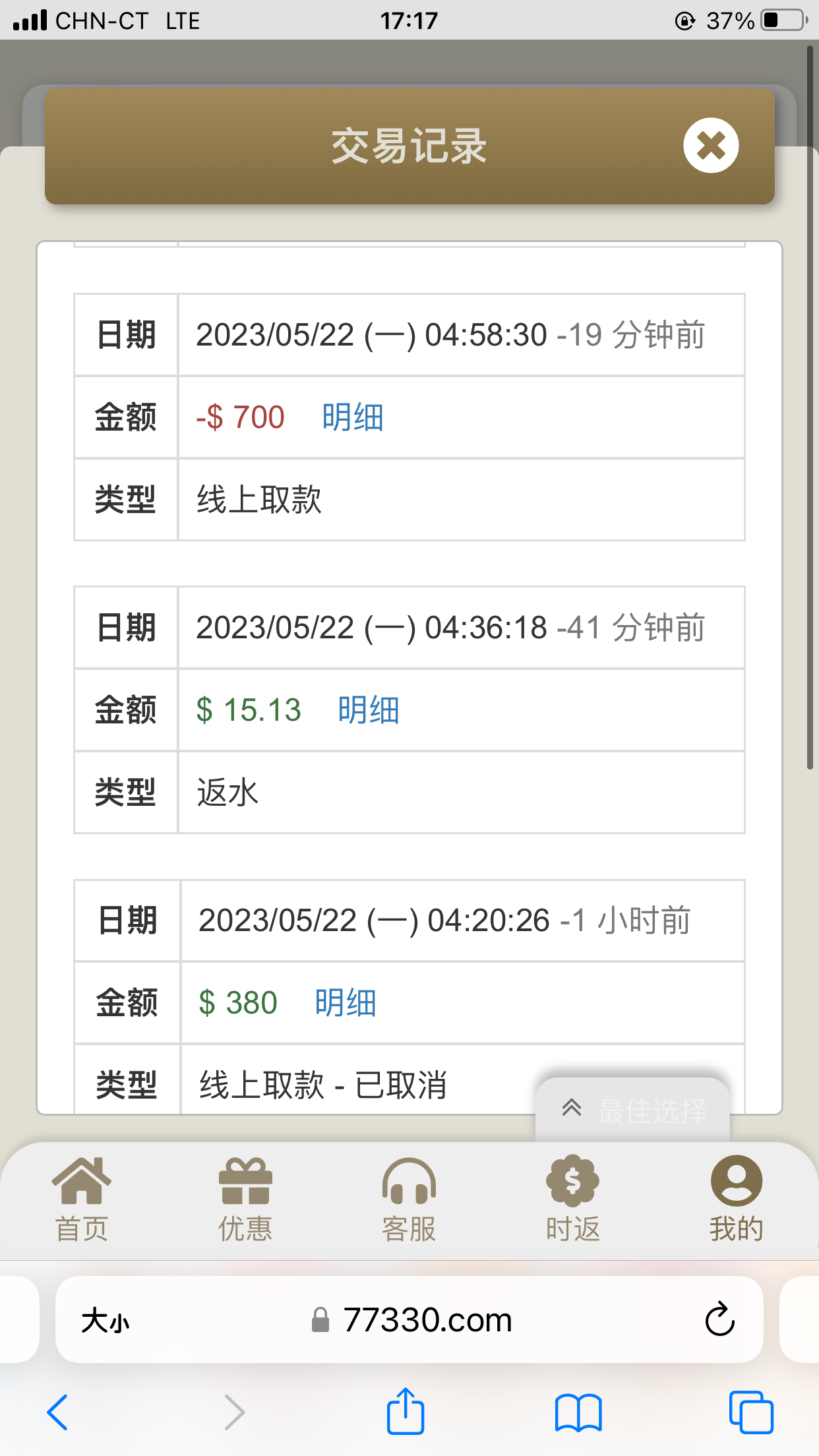 充了100玩死了,下午充了十块送18玩死了,然后几块钱反水和优惠玩pg到1200,取款要么说账号异常要审核,要么说已经出款,第三方出款还在处理,